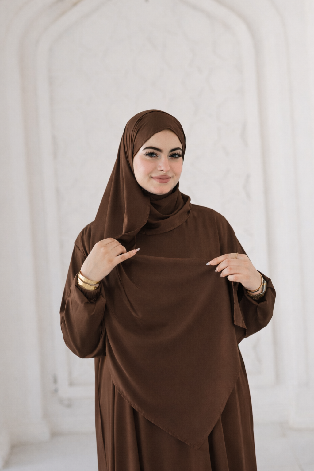 إسدال أنيق بخامة كريب ناعمة وفاخرة، مناسب للصلاة، وليالي رمضان، والعيد، والعمرة ✨🌙