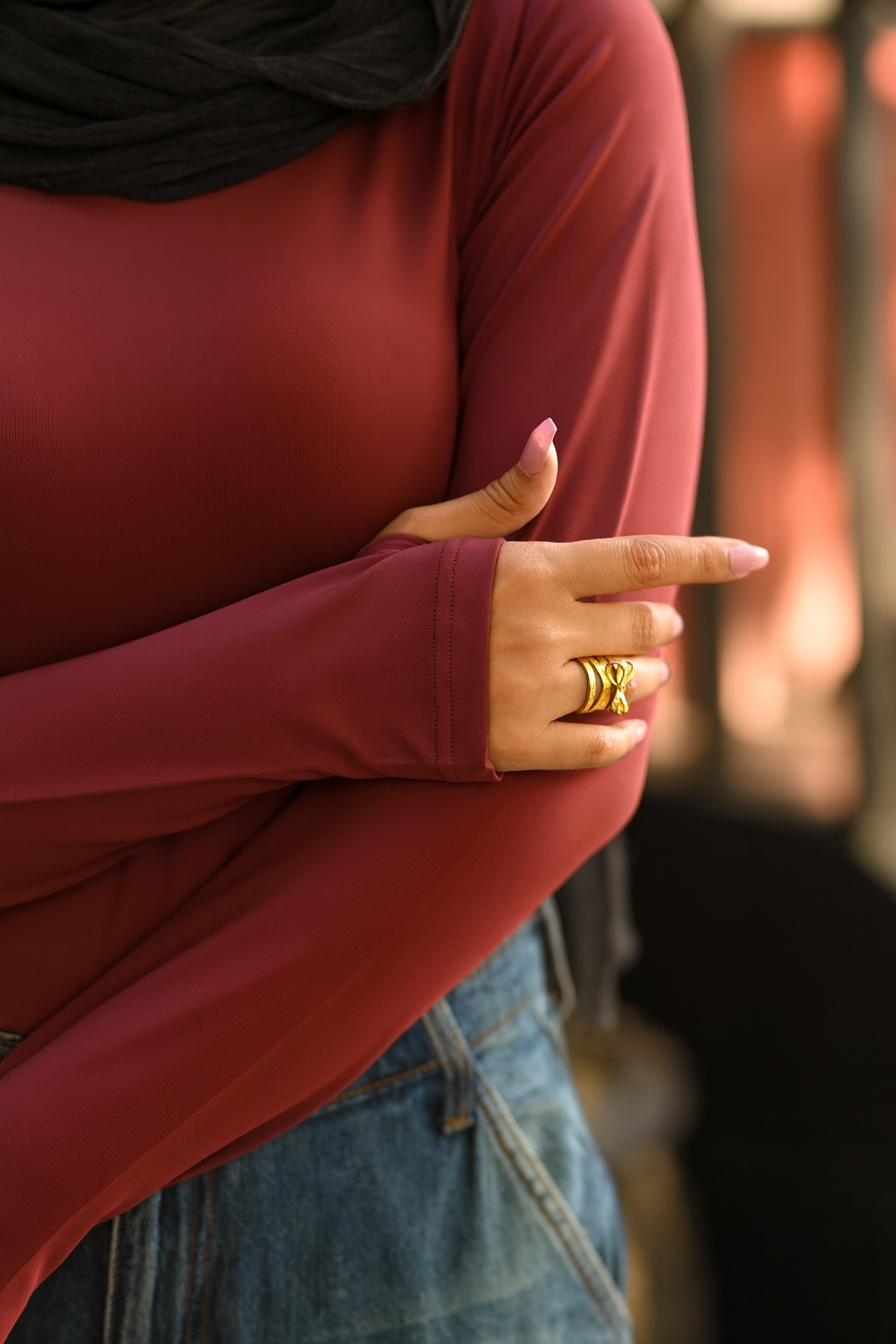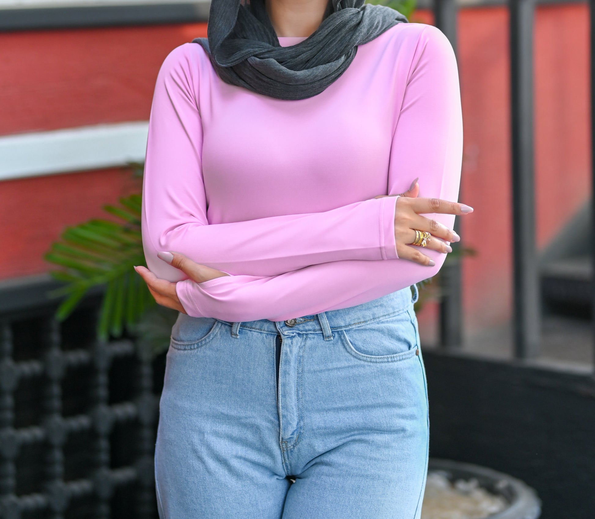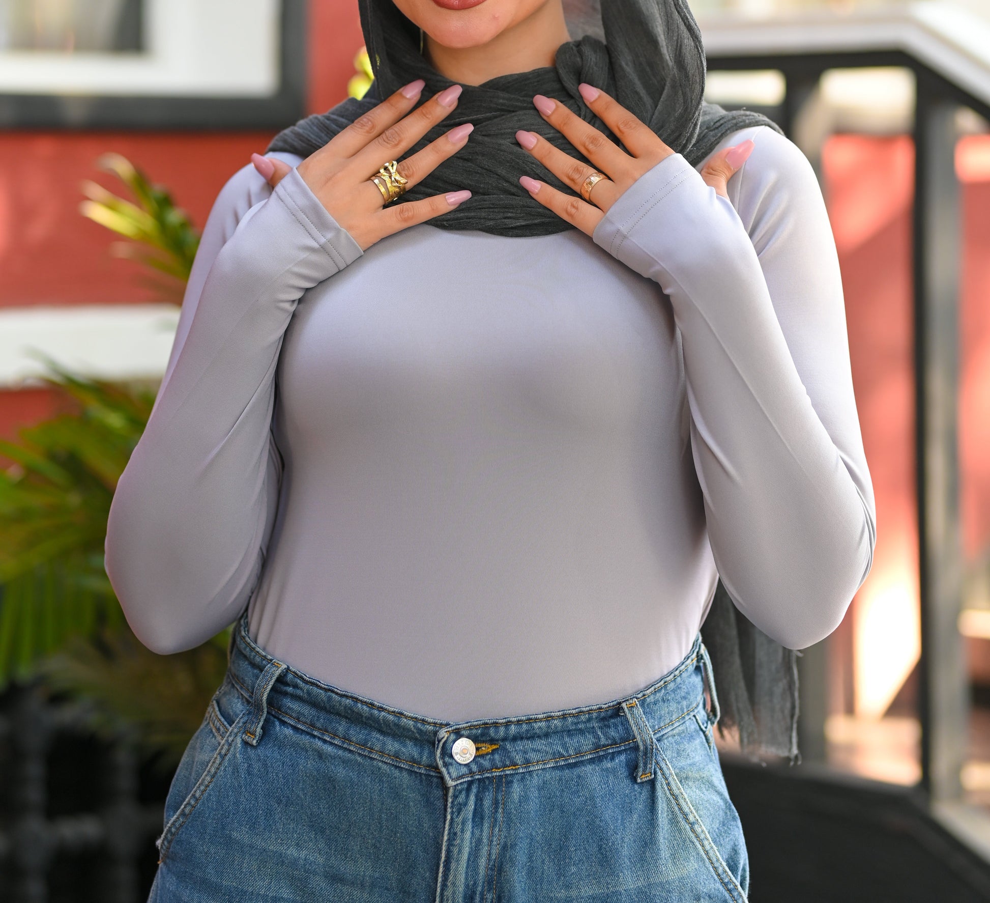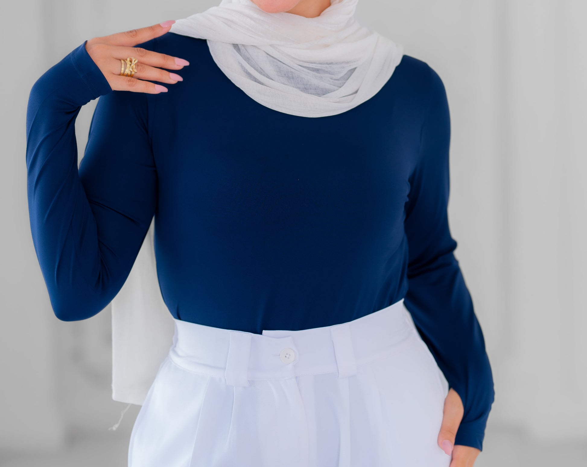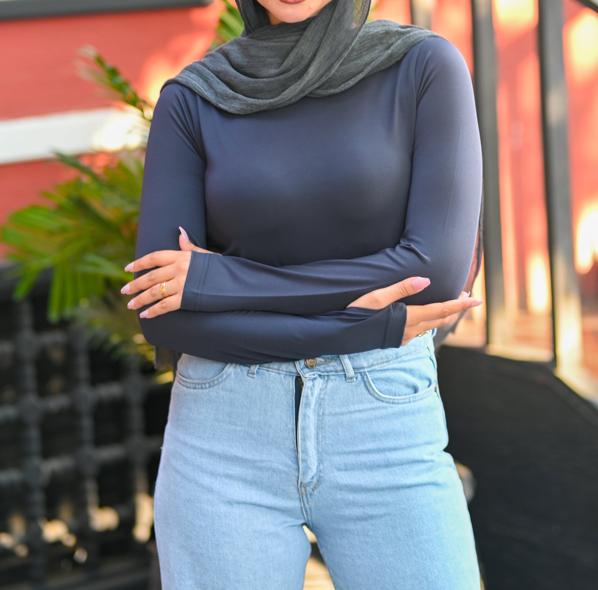 This piece is designed as a base layer or hijab underpiece and should not be worn as a standalone top.